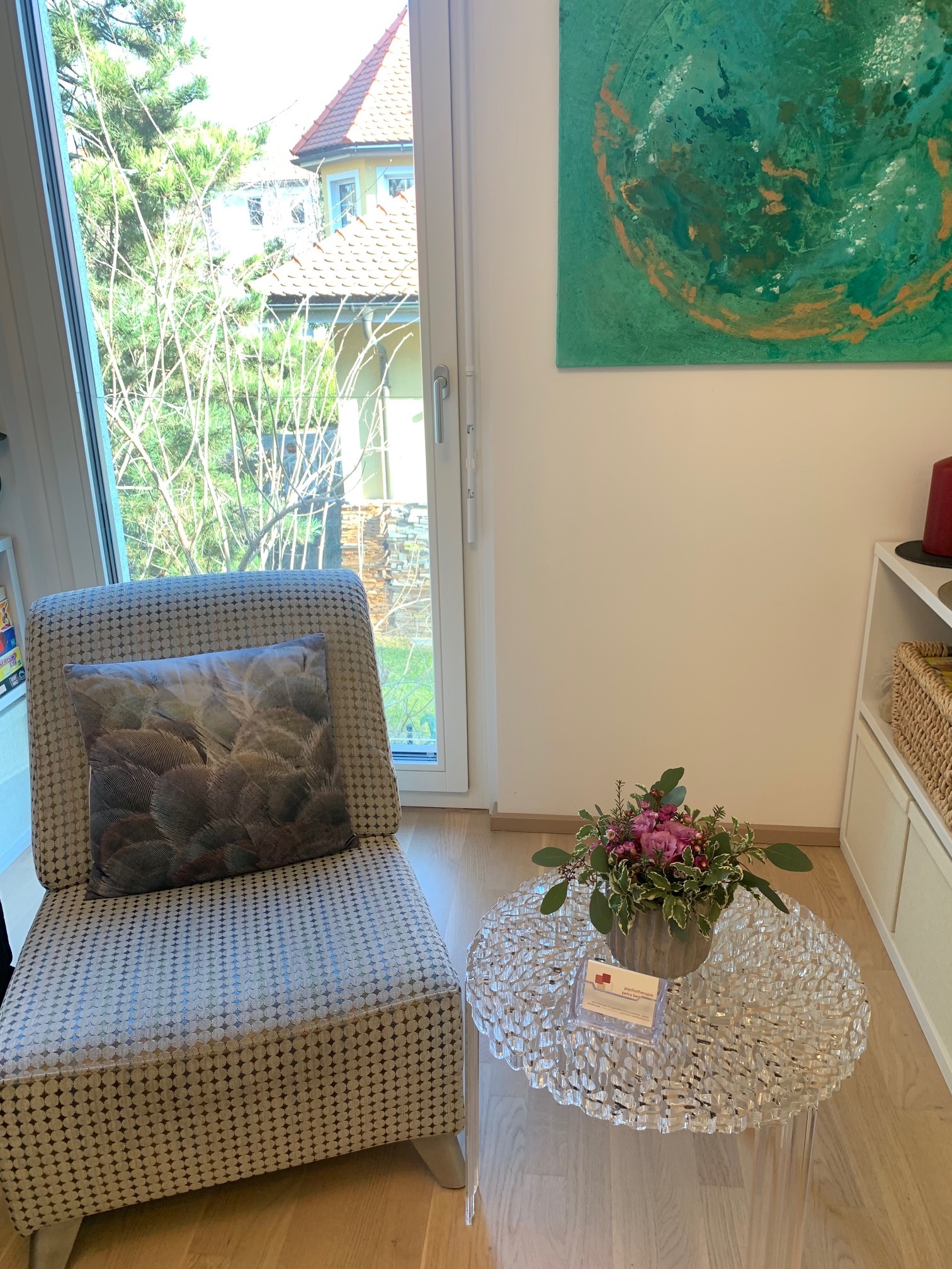 Die barrierefreie Praxis liegt zentral in Guntramsdorf etwa fünf Gehminuten von der Badnerbahn und den Bushaltestellen entfernt und verfügt über ein gemütlich gestaltetes Therapiezimmer.